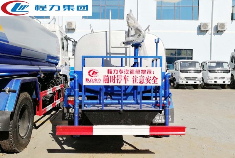 該車型為東風公司最新國五 排放標準。灑水車專用部分由罐體、水泵、取力器、傳動軸、球閥、噴灑裝置等部件組成。采用國家定型產品,具有性能穩定、工作可靠、通用適配等特點。灑水車罐體結構為橢圓形或方圓形,采用武鋼優質碳鋼制作,先進的對焊接工藝,罐體內設防蕩防波隔板,下端有通孔,罐體成型后高壓氣體試漏檢測,使罐體具有強度高、重心穩、車輛運載安全平穩等特點。