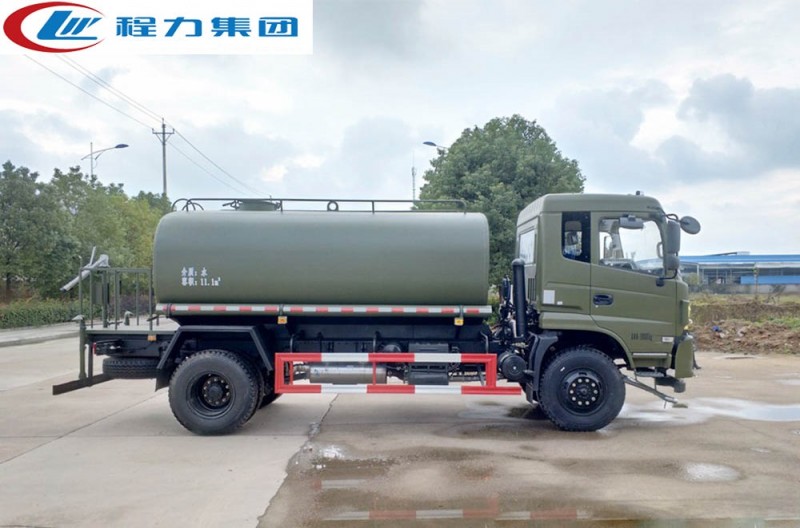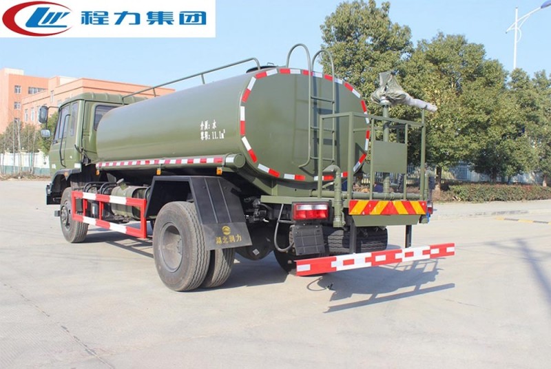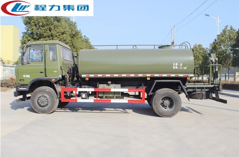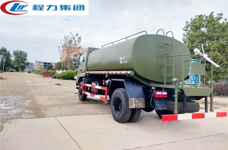 該車可做東風四驅(qū)沙漠運水車使用,罐裝有效容積13立方,采用優(yōu)質(zhì)碳鋼焊接而成,自動流水線罐體生產(chǎn)工藝分為:下料、拼板自動焊,封頭旋壓成型,罐體一次滾壓成型等國內(nèi)先進生產(chǎn)工藝。帶前沖(噴)、后灑、后工作平臺,平臺上有高壓水炮(炮可360全方位旋轉(zhuǎn),可連續(xù)調(diào)節(jié)為柱狀、開花狀、雨狀、半霧狀水流),配備大功率專用灑水泵,帶2根透明鋼絲抽水管,泵可自吸自排,帶過濾網(wǎng),可從野外河流里抽水;帶消防接口,可從城市消防栓處取水;帶自流閥,可自然排水或者采用水泵進行加速排水。 東風四驅(qū)消防灑水車在設計上內(nèi)置消防泵夾心取力器,泵倉位于罐體前部,隱藏設計,有倉門,有效容積為8.0立方,配專用大功率消防灑水車炮,最大射程30m