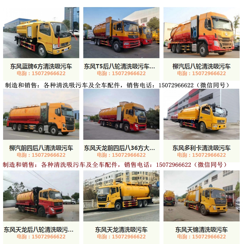 本公司專業設計制造清洗吸污車多年,擁有先進的生產設備和制造工藝。常年提供各種清洗吸污車現車,并為客戶提供技術咨詢、各種清洗吸污車配件和售后服務,聯系電話:15072966622(微信同號)