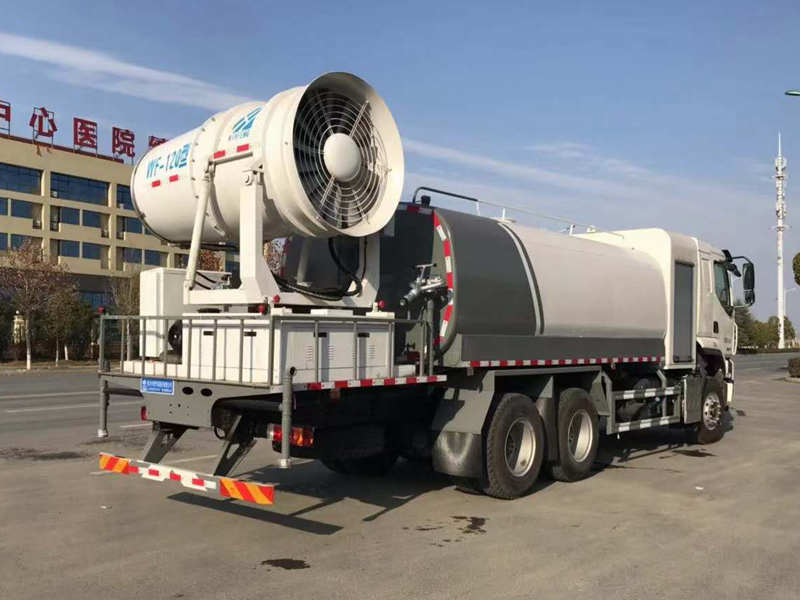 上裝配置:罐體15-17方,罐體拼板自動焊接(美國林肯焊機及電源)焊縫美觀結實耐用,罐體封頭自動焊接,罐體底板加厚,新式前沖,噴嘴可調節角度,球閥式消防栓帶接口,聚四氟法蘭墊片,管路加粗,優化管道設計,前沖可沖洗8車道,高炮射程35-40米,全車輔件螺絲連接,標準化生產,可拆卸式方便維修!后平臺可裝60-100米霧炮。