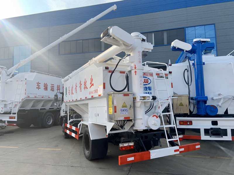 電動:上裝罐體材質采用優質鋼板,整車3條絞龍(底部水平絞龍、尾部提升絞龍、頂部出料絞龍),由3個5.5KW電機帶動,頂部絞龍用液壓控制舉升,可左右旋轉180°。罐體分2倉,可根據用戶要做多個獨立分倉,可以獨立控制各分倉卸料順序和速度,可選擇外接電源驅動或液壓驅動絞龍方式,卸料絞龍長7.2米,舉升仰角60度,可左右旋轉180度。