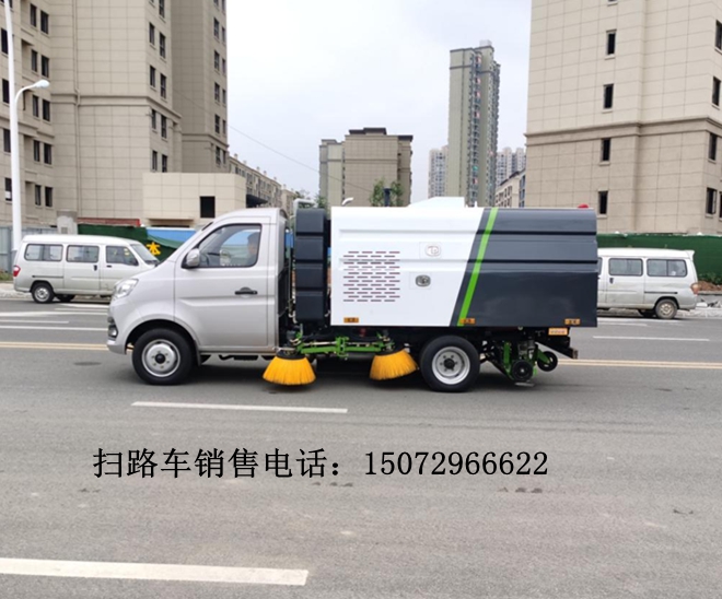 該掃路車長安國六二類底盤改裝,加裝副發動機、風機、清水箱、垃圾箱、左右立掃、后置吸盤,掃盤降塵系統,液壓系統、專用裝置電控系統和副車架等改裝而成。